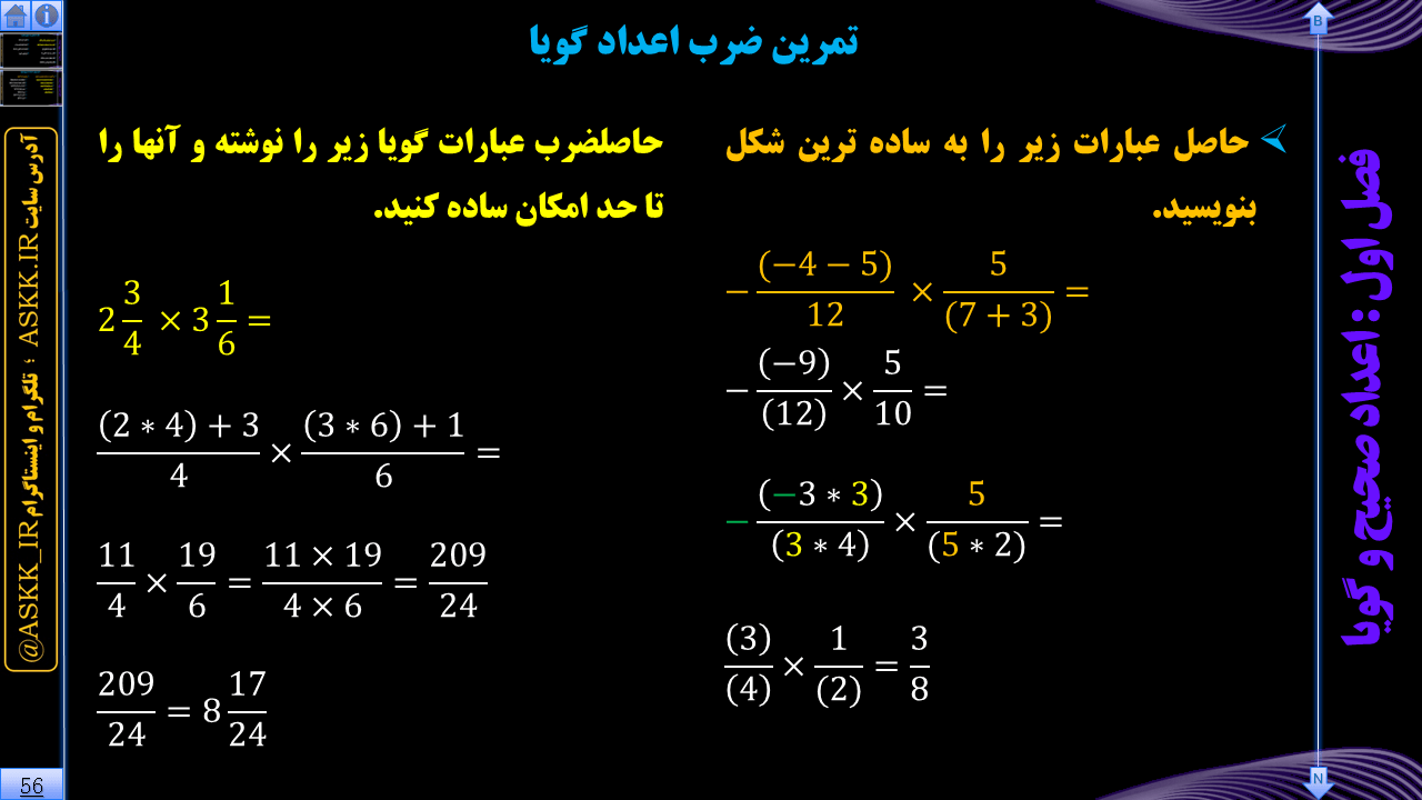 • درس چهارم: ضرب عددهای گویا